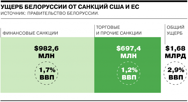 В апреле 2021 года США ввели санкции против девяти белорусских компаний, включая государственную нефтяную компанию «Белнефтехим», химический завод «Гродно Азот» и НПЗ «Нафтан». Летом ЕС ввел секторальные санкции против основных экспортных отраслей Белоруссии. Ряд иностранных авиакомпаний с мая 2021 года прекратили полеты в воздушном пространстве Белоруссии. Упущенная выгода от перелетов оценивалась в €70 тыс. в день.