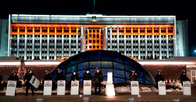 Мэрия (акимат) Алматы накануне. 5 января днем протестующие взяли ее штурмом. Фото Владимира Третьякова, AP