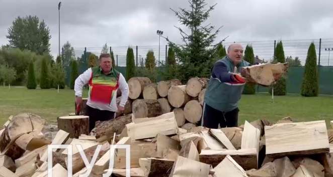 14 сентября телеграм-канал «Пул первого» опубликовал видео о том, как Александр Лукашенко вместе с бизнесменом Сергеем Тетериным колет дрова для «замерзающей Европы».