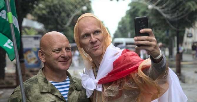 По словам Сахащика во время акции 16 августа он «организовал группу ребят в тельняшках, нас около 70 человек пришло, чтобы не было никаких провокаций, чтобы все было спокойно» с двух сторон – власти и протестующих.