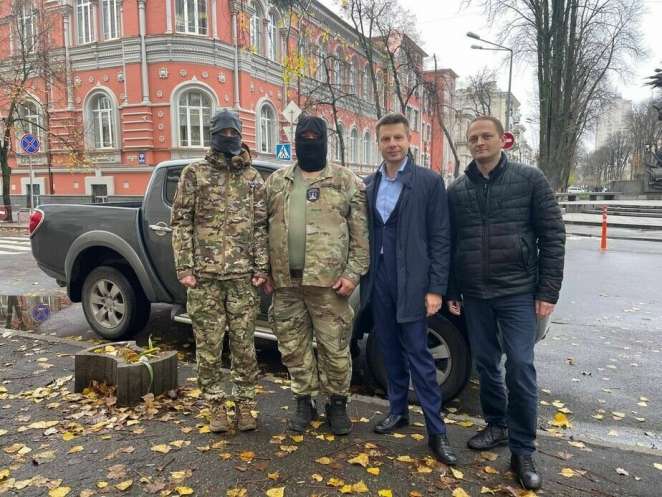 В ноябре Алексей Гончаренко вместе с активистом Артемом Павловым передал машину для полка имени Кастуся Калиновского.