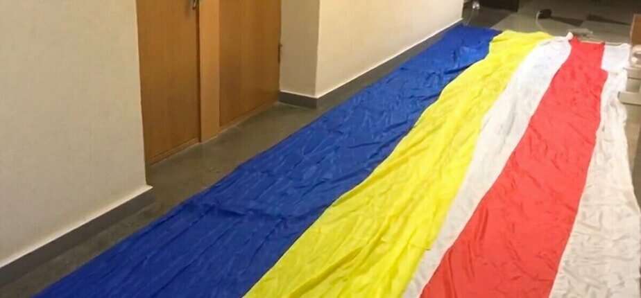 Вот эти флаги еще до вывешивания. Фото: МВД