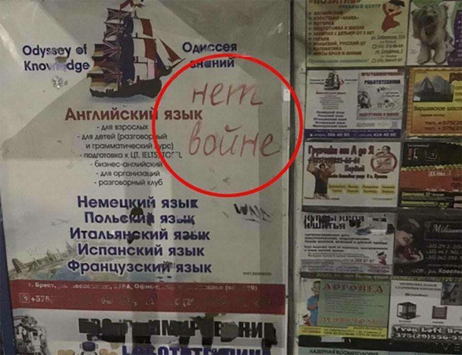 Людей задерживают за самое невинное. В декабре 2022 года в Бресте 68-летнюю пенсионерку Людмилу Коган задержали за надпись «нет войне» на доске объявлений на остановке транспорта. Сейчас ее ждет суд по уголовному делу.