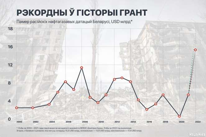 Точные подсчеты российского нефтегазового гранта проводил экономист BEROC Дмитрий Крук. «Наша Ніва» в своей калькуляции основывалась на его методологии.