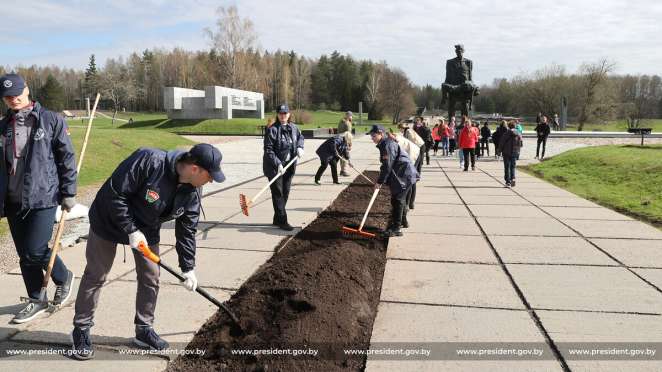 В субботнике в «Хатыни» приняли участие и представители трудовых коллективов, активисты ОО «БРСМ», которые занимались уборкой и озеленением комплекса, подсыпкой и выравниванием грунта.