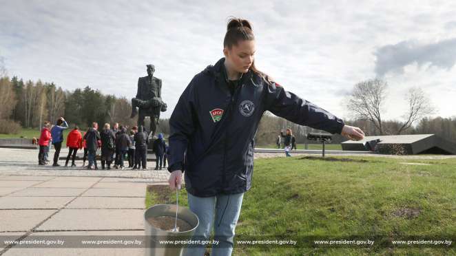 Как информирует его пресс-служба, политик в составе своей бригады высаживал деревья на территории комплекса. Теперь здесь появилась небольшая дубовая роща: в ознаменование 80-летия хатынской трагедии высажено 80 дубов.