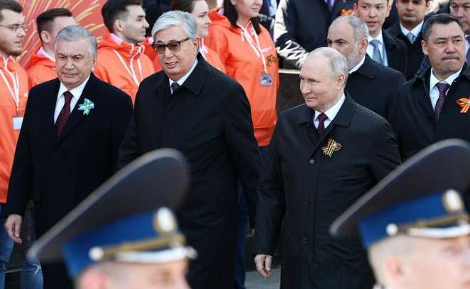 После парада Путин прошел по трибунам с ветеранами, пожал им руки. Лукашенко в это время пообщался с Бердымухамедовым и Мирзиёевым.