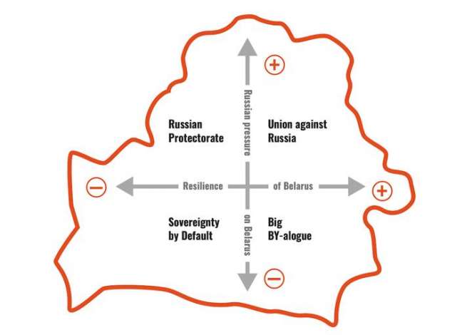 Все сценарии базируются на двух главных драйверах: уровне российского давления на Беларусь и уровне сопротивления самой Беларуси. Различные сочетания этих двух факторов и обуславливают сами сценарии: