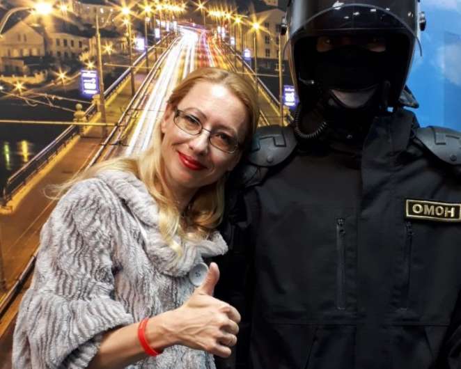 Ольга Бондарева в гостях у гродненского ОМОНа, октябрь 2020 года. Фото: телеграм-канал «БондареVа. БеZ купюр»