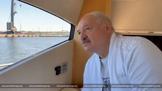 Просто напомним, что летом прошлого года официально сообщалось, что Лукашенко лично «на катере ознакомился с ходом строительства белорусского порта в Бронке» (на фото ниже).