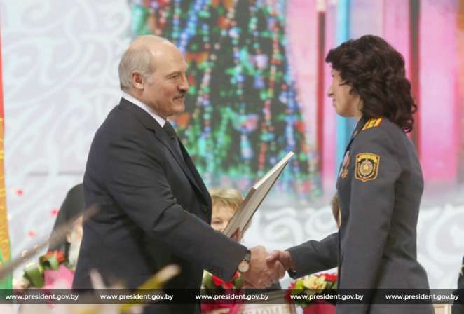 2014 год. Лукашенко вручает премию «за духовное возрождение» Чемодановой, начальнику инспекции по делам несовершеннолетних УВД Минского райисполкома