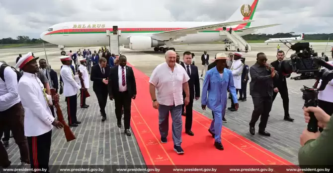 – Прилетел один удивительный гость, в белой рубахе давно уже не сходящейся на пузе. Прилетел, да как начал обниматься-целоваться, чуть отвязались, – пишет Александр Кнырович на канале Экономика Беларуси. – И говорил усатый гость странные речи, мол «пришло время Африки!», но «странам, которые обрели политическую независимость, еще только предстоит освободиться от эконо-мической зависимости».