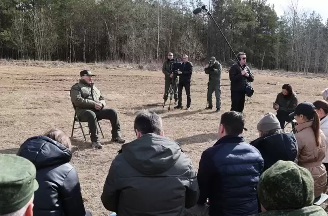 Раньше во время командировок Лукашенко отвечал на вопросы журналистов госСМИ, исключительно стоя. Еще несколько лет назад никому в голову не могла прийти мысль, что физическая форма правителя настолько ухудшится, что за ним нужно будет таскать стул, чтобы он несколько десятков минут мог пообщаться с пропагандистами.