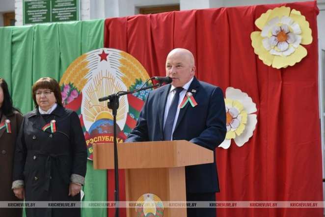 Председатель Кричевского райисполкома Андрей Седуков во время празднования Дня государственных символов, 12 мая 2024 года. Фото: «Крычаўскае жыццё»