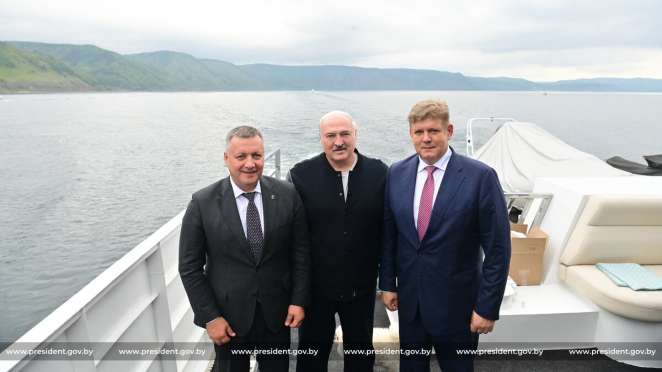 Совсем нелепо Лукашенко выглядел во время поездки на Байкал. Вместе с губернатором Иркутской области Игорем Кобзевым и полномочным представителем президента РФ в Сибирском федеральном округе Анатолием Серышевым он совершил прогулку на корабле вдоль Кругобайкальской железной дороги.