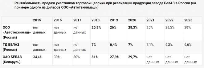 При этом ежегодно в топах самых прибыльных бизнесов в России с белорусским капиталом оказываются две компании-дилера БЕЛАЗ: «Автотехинмаш» и «Б-24».