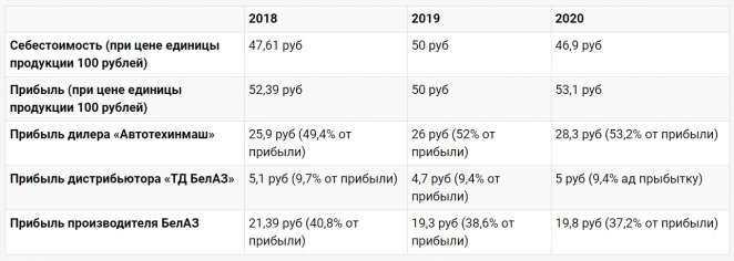 При реализации продукции БелАЗа происходят чудеса: товар один и тот же, а рентабельность у каждого участника цепочки разная — настоящая магия.