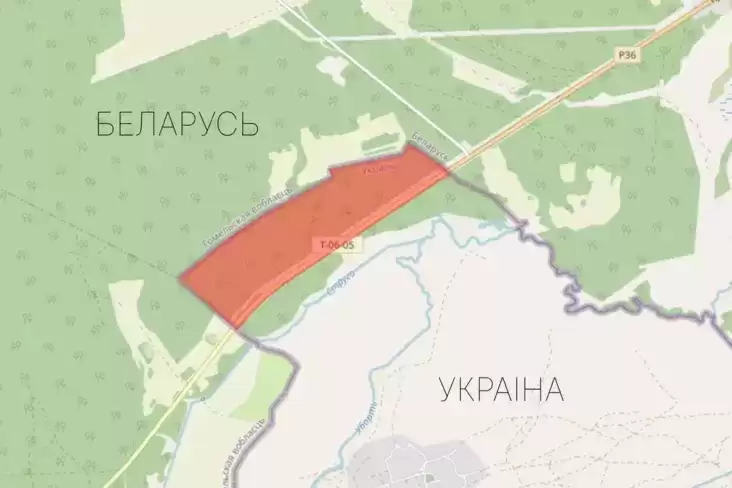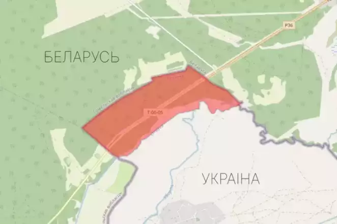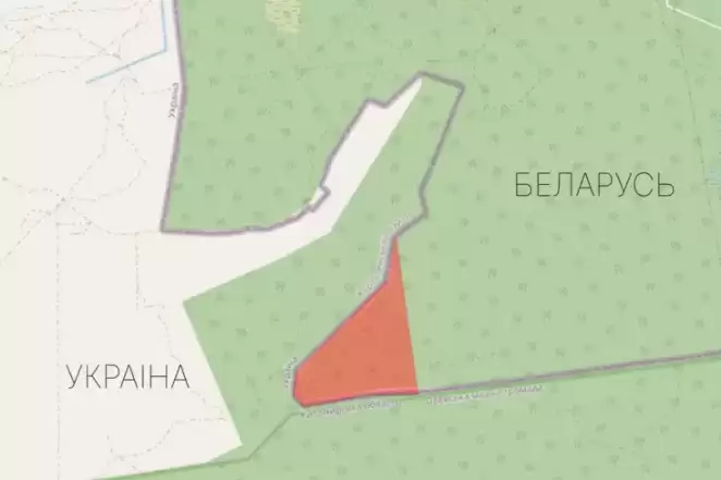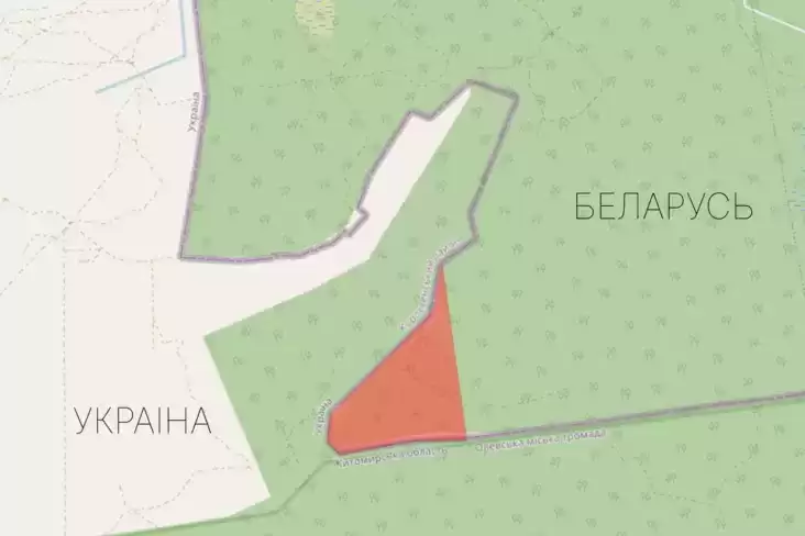 Территории, которыми предположительно обменялись Беларусь и Украина перед началом российского вторжения. OpenStreetMap