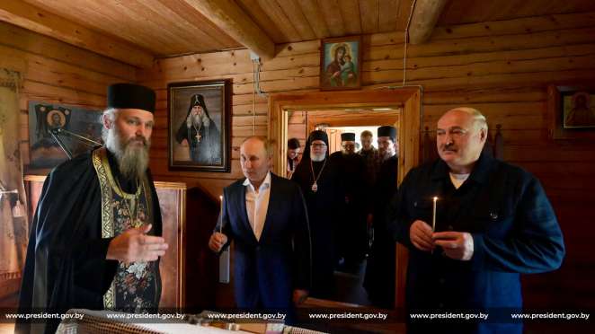 Во время визита на Валаам было видно, что Александр Лукашенко по-прежнему чувствует себя неважно. Ему тяжело ходить. И при всякой возможности он пытается либо присесть, либо опереться на что-нибудь. Вот с каким перекошенным от боли лицом белорусского правителя засняла кремлевская пресс-служба.