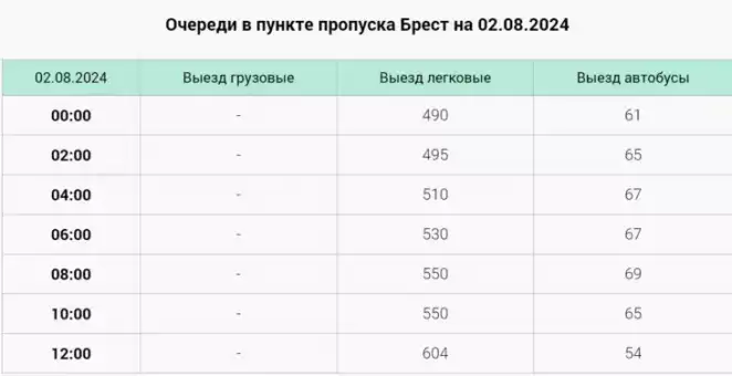 Тренд последних дней — очереди из автобусов на выезд из Беларуси. На пункте пропуска «Каменный Лог» по состоянию на 12 часов пятницы выезда из Беларуси в Литву ожидают 11 автобусов. Первого августа был поставлен рекорд, когда выезда ждали 14 автобусов.
