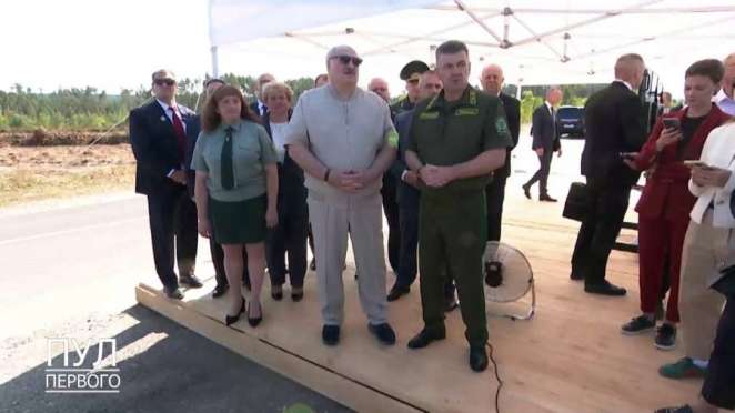 Белорусский правитель в буквальном смысле лишь отметился в регионе. Всё его посещение Мозырского района состояло из маршрута в полтора километра — от вертолётной площадки к поселковой площади Прудка и обратно.