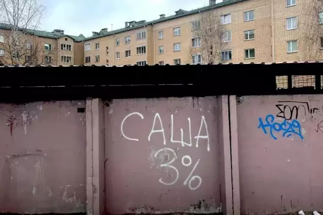 Иллюстрационное фото: надпись на мусорном баке с критикой фальсификации выборов 2020 года