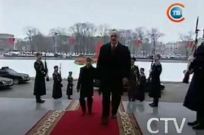 Первая инаугурация Александра Лукашенко (а тогда он честно выиграл выборы Президента Республики Беларусь, набрав 80,3% голосов избирателей) состоялась 20 июля 1994 года в Овальном кабинете Дома правительства. На тот момент Лукашенко было 39 лет. И присягу на верность беларускому народу он произносил под бело-красно-белым флагом на беларуском языке. Но через год он (в нарушении Конституции) инициировал референдум, в результате которого бело-красно-белый флаг и герб «Пагоня» сменили на советские символы -- красно-зелёный флаг времен БССР и герб того же периода. А затем состоялись новые выборы, на которых Лукашенко вновь выиграл с рекордным результатом. Вторая церемония вступления главы государства в должность состоялась 20 сентября 2001 года во Дворце Республики – уже с новым гербом и флагом...