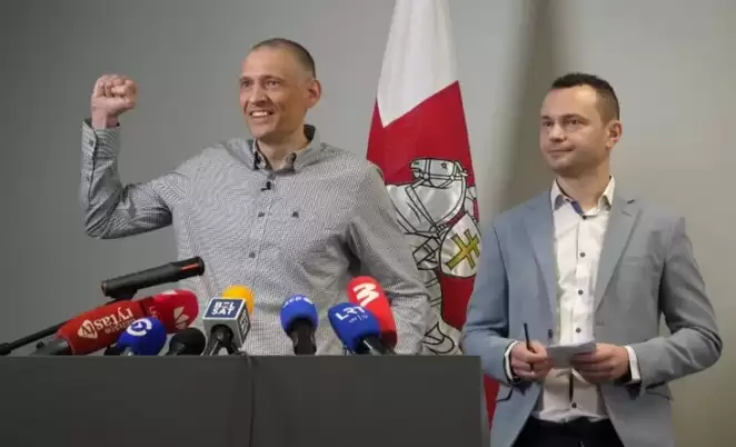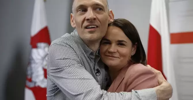 Сергей и Светлана Тихановские. Фото: AP Photo / Mindaugas Kulbis