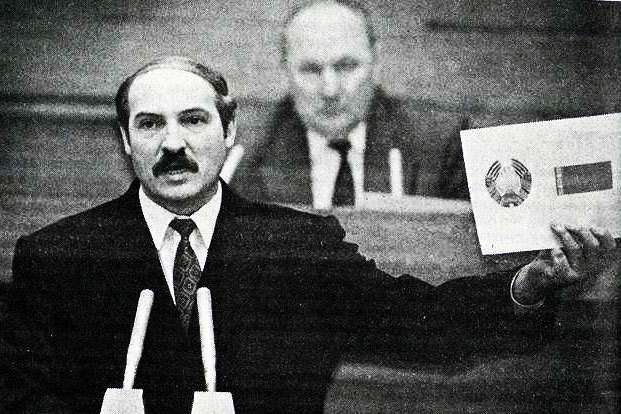 Всего через год Лукашенко, проведя первый в Беларуси референдум, «отменит» государственные символы республики – герб «Пагоня» и бело-красно-белый флаг – и вместо них вернёт в Беларусь герб и флаг времён БССР...