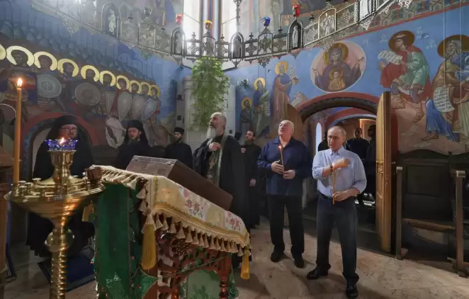 — Выходные мы положим на алтарь обсуждения,— метко прокомментировал Александр Лукашенко, учитывая, куда они приехали и где сидели.— Владимир Владимирович, вы очень правильно сказали: когда я подлетал сюда, отметил, что мы с вами хорошую традицию зародили — два православных народа, мы как представители, каждый год (совместные визиты президентов России и Белоруссии на Валаам стали традиционными с 2019 года, нынешняя поездка — четвертая.— А. К.)... и этот храм уже как родной... Но вот на подъезде заметил, что Смоленский скит — это хорошо, но белорусского нет здесь скита.