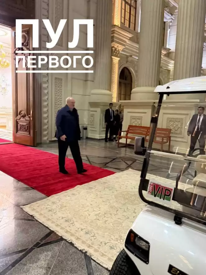 Более того, Пул Первого опубликовал фото, где Лукашенко в Душанбе идет к электрокару с табличкой VIP. Подпись к снимку гласит, что правитель выехал на неформальный ужин для глав государств.