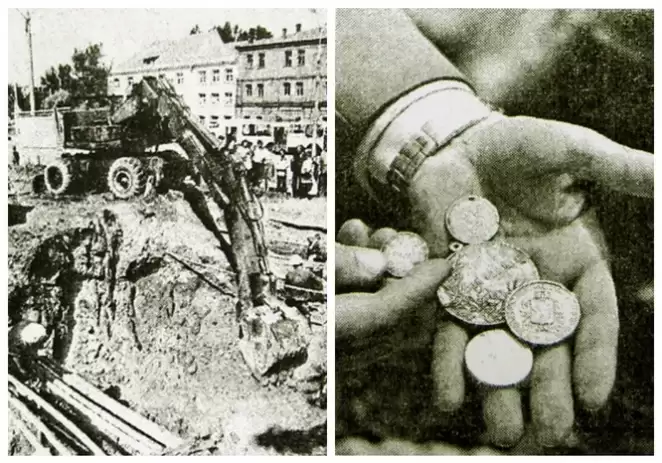 4 августа 1988 года в Минске на пересечении улиц Володарского и Городской Вал (в то время она называлась Республиканская) прокладывали теплотрассу. Экскаваторщик Леонид Блатун копал траншею и вдруг увидел, как из ковша выпал блестящий предмет, похожий на бокал. Мужчина вышел посмотреть и увидел огромный сундук, который оказался набит настоящими сокровищами. Одни только серебряные монеты и изделия из серебра весили тринадцать килограммов!
