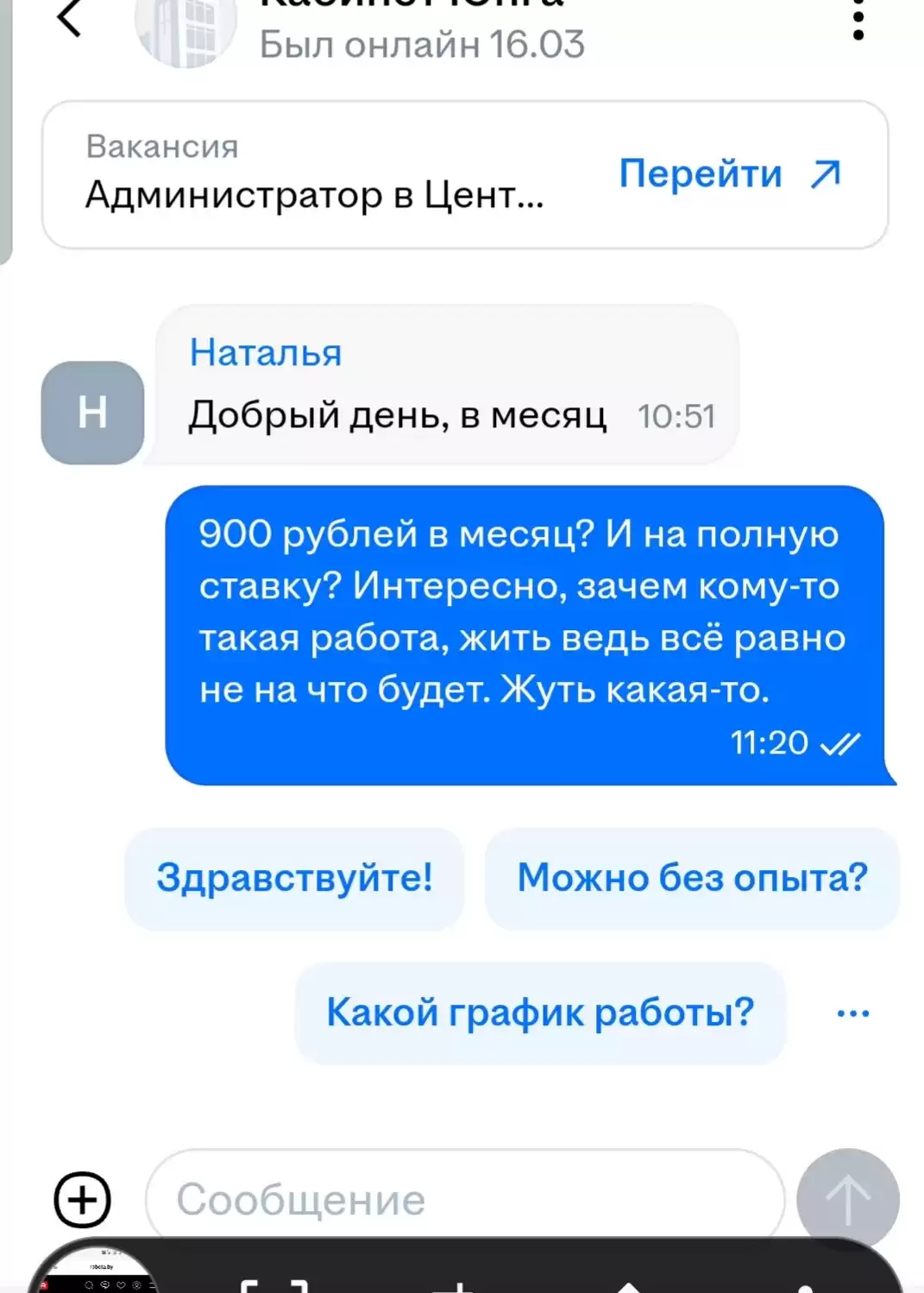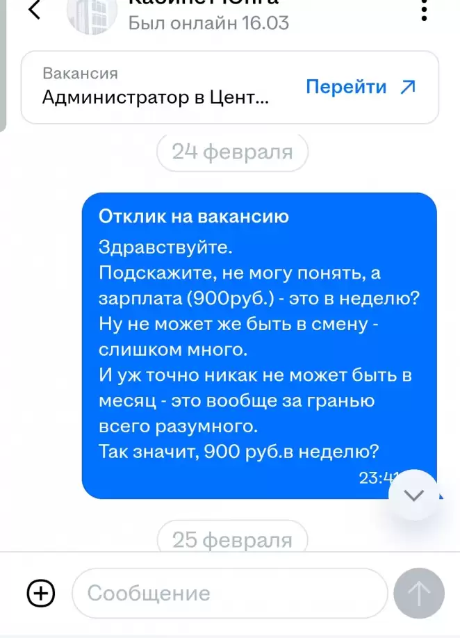 «Так за эти деньги надо и с документами работать и на звонки отвечать, ревизию проводить, закупки в офис, убираться и ещё куча будет поручений от начальства. Они там совсем ёбу дали?»