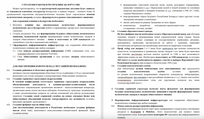 В документе Чернова прописывалось создание инфраструктуры влияния на любой сценарий развития событий в Беларуси (напомним, на тот момент в стране еще продолжались протесты).