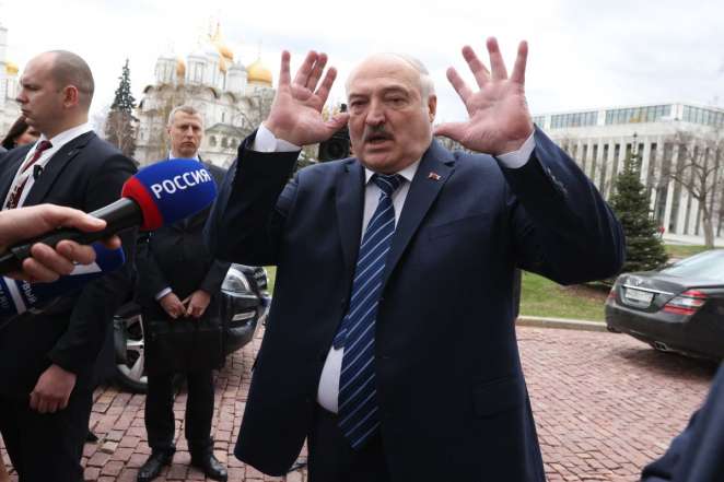 Александр Лукашенко разговаривает с журналистами по прибытии на переговоры с Владимиром Путиным в Кремль. Москва, Россия. 12 апреля 2024 года. Фото: Contributor / Getty Images
