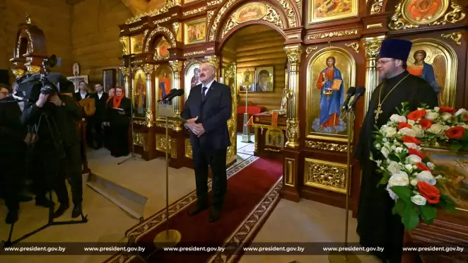 Александр Лукашенко 12 апреля посетил храм Святителя Николая Чудотворца в агрогородке Евдокимовичи Шкловского района. Он сказал, что его самое любимое «действо» в храме — это поставить свечу. Но, по своей традиции, Лукашенко не перекрестился.