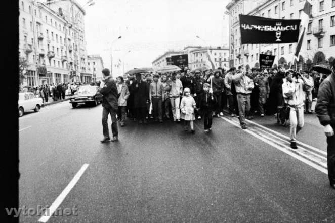 ...30 сентября 1989 года в столице БССР несколько тысяч человек собрались возле парка Челюскинцев и двинулись в сторону Дома правительства на площадь Ленина. Впереди процессии несли церковный колокол. Позже он получит в народе название «чернобыльского». В тот день люди шли молча, и только колокол свидетельствовал о приближении процессии. Многие прохожие присоединялись к колонне, и она на глазах увеличивалась с каждой минутой. По оценкам наблюдателей, на площадь пришли не менее 50 тысяч человек. Во время СССР это было ЧП. Ведь любые меры были исключительно по разнарядке властей. Да и то два раза в год – 1 мая и 7 ноября. Субботники не в счет.
