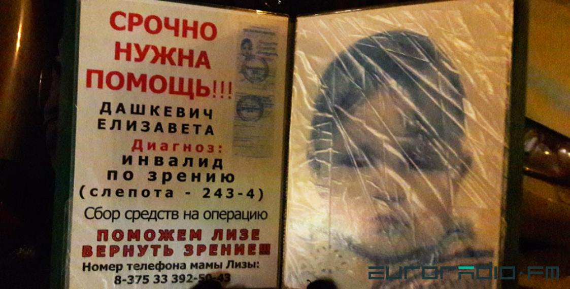 Во второй половине ноября только журналиста Еврорадио подкараулили так дважды — у гипермаркетов "Корона" и у "Простор". Действовала одна и та же мошенница с портретом Елизаветы Дашкевич. Девочка с фото действительно существует. Она живёт в Калинковичах. Ребёнку пять лет, у неё действительно проблемы со зрением.