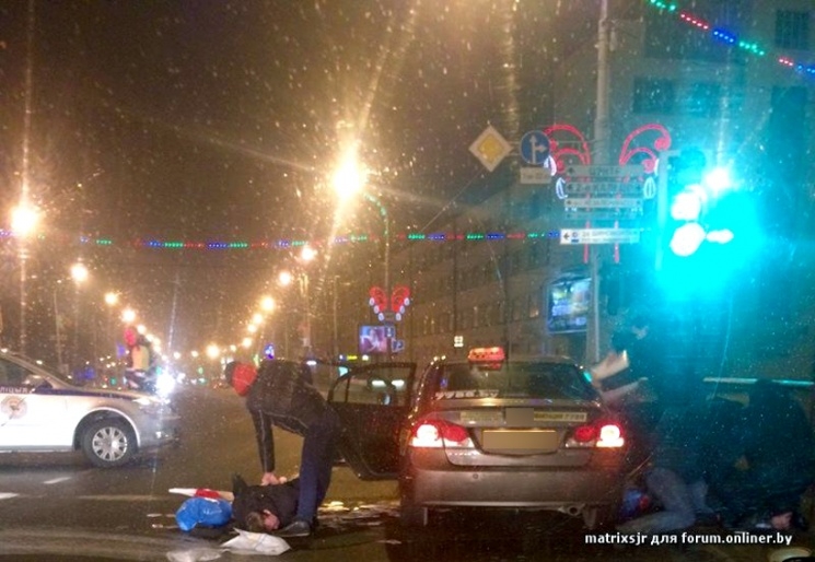 Очевидцем произошедшего стал пользователь matrixsjr, который двигался по проспекту Независимости со стороны улицы Калинина, собирался повернуть на улицу Сурганова, но остановился на светофоре за автомобилем такси.