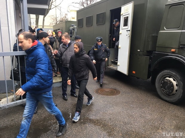 Павел Марков в центре в черной куртке, с капюшоном на голове. Фото: TUT.BY