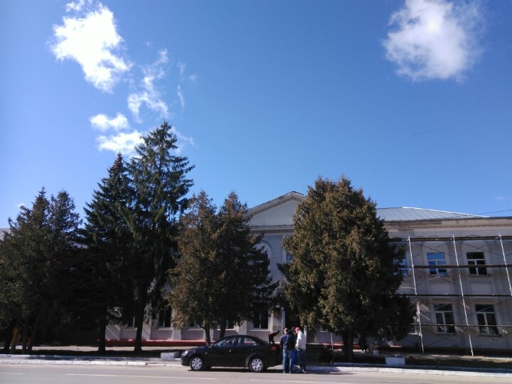 Сейчас ликвидируют старые ели и деревья в центре города.