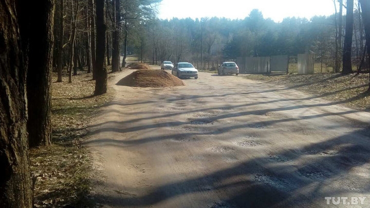 На дорогу, ведущую к пляжу № 5, можно въехать по улице Парковой в Ждановичах. Но гравийку еще не привели в порядок после зимы — яма на яме, на некотором расстоянии друг от друга насыпаны кучи песка с гравием. Приходится ехать очень медленно, иначе проблемы с подвеской гарантированы.