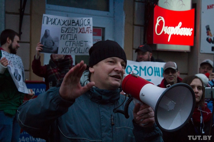 Участники митинга по очереди брали в руки мегафон и говорили о том, что их волнует. Спустя час после начала акции против декрета № 3 на место сбора пришел депутат Палаты представителей Национального собрания Игорь Марзалюк. Он взял в руки мегафон, однако выступить не смог — в острую полемику с ним сначала вступила женщина, а затем освистала толпа с криками «Ганьба!» и «Уходи».