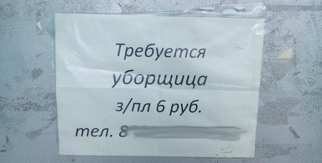 В деревне Ровенская Слобода предлагают работу уборщицы за 6 рублей в месяц
