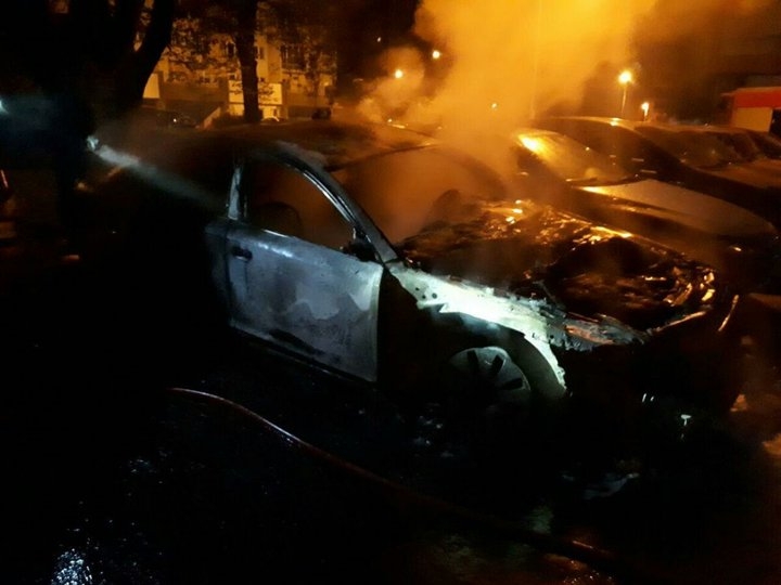 Возле второго подъезда полыхал SEAT Ulysse. В машине выгорел моторный отсек и салон. Огонь также повредил припаркованный рядом Ford Transit.