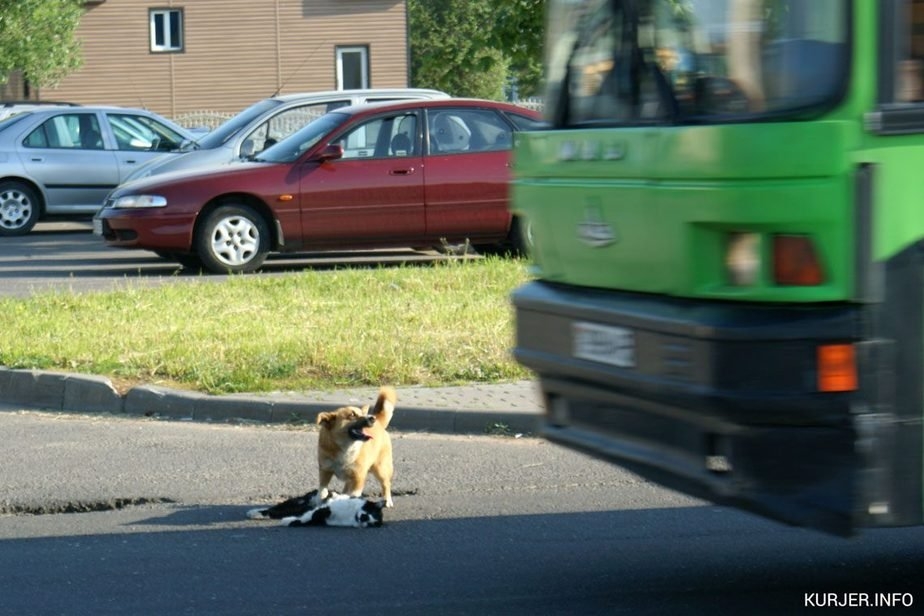В Слуцке собака пыталась спасти сбитую машиной кошку