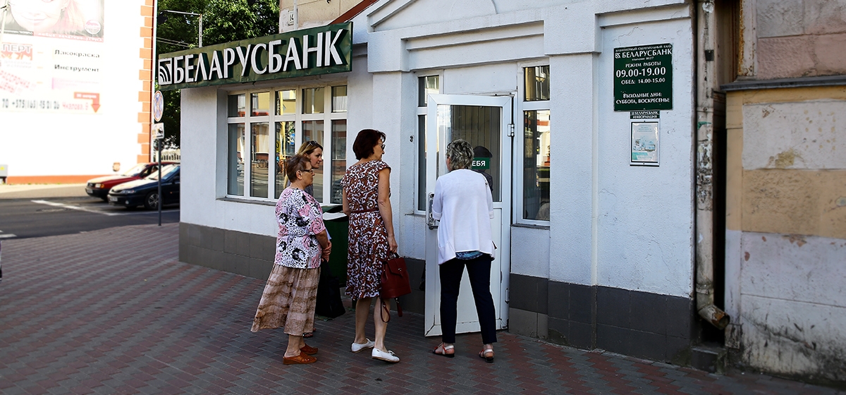 Очередь в одном из банков города заканчивается на улице, 22 июня, 17 часов 10 минут. Фото: Евгений Тиханович