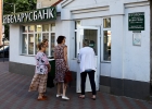 Несмотря на разгар рабочего дня, в банках и в почтовых отделениях города многолюдно. В одном из банков в очереди стоит больше 20 человек, работают две кассы. Большинство людей пришло оплачивать коммунальные платежи. В помещении душно, жарко, люди часто выходят на улицу.