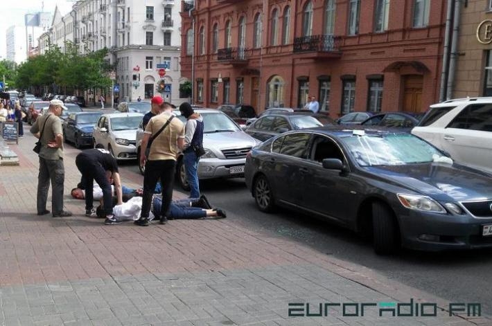 27 июня в районе 16 часов на улице Володарского правоохранители задержали троих мужчин. Для этого милиционеры разбили боковое стекло и вытащили мужчин наружу. На лобовом стекле был разбитый пакет кефира. Вероятно, так правоохранители отвлекли внимание. О задержании сообщили информагентства и пользователи социальных сетей.+