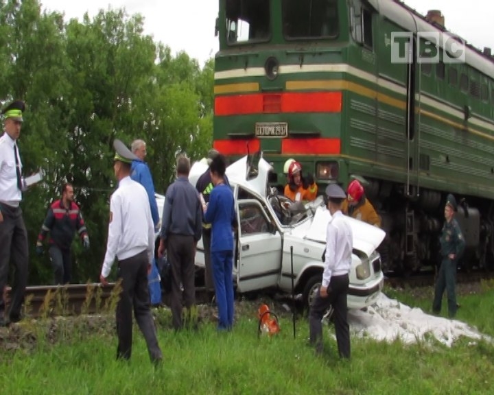 Авария произошла на железнодорожном переезде по улице Пушкина. Товарняк протянул машину по рельсам более 300 метров. В машине находились три человека. Водитель погиб, пассажиры находятся в больнице.